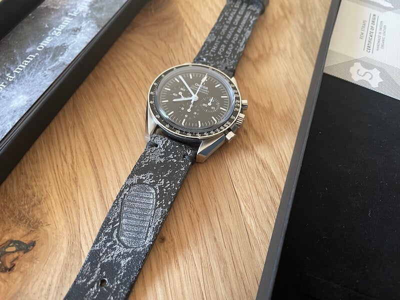 Ein Stück vom Mond an der Moonwatch: Das ermöglicht das Moon DNA-Armband von REM Straps aus Schweden, das Mond-Meteoriten verarbeitet hat. Wir haben es getestet und uns angesehen, wie es sich an der Omega Speedmaster Professional trägt.